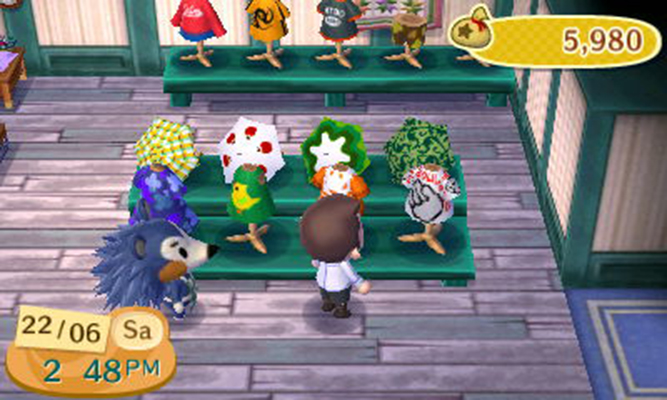 Having done all I can as Mayor I went to the shops. First I visited the tailors Mable & Able’s. If you ask me they look more like Sonic the Hedgehog. I put the town’s flag design on a shirt in store for the residents to purchase and wear. The more they see this reminder the better.