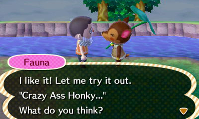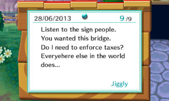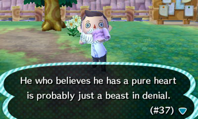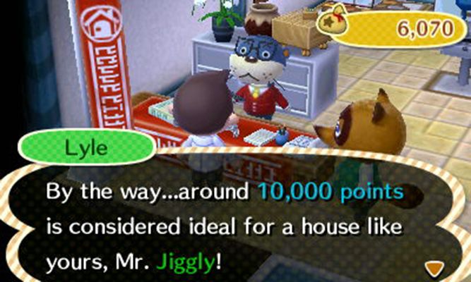 I stopped into Nookling Junction. Tommy, the younger raccoon was running the joint today. There was nothing that appealed to me so, as per the norm, I bought a fortune cookie. I popped over to Nooks. He looked angry. He started going off his head about the traveling camel encroaching on his business. I told him to get over it. Competition is needed, plus it was only going to be one day a week he was in town. There was an otter set up in the corner of Nook’s shop. Apparently he was on some kind of housing rating board. Happily he said my house had a rating of 1335 points. By the way he was talking I figured this was good. Then he let me know what it was scored out of…