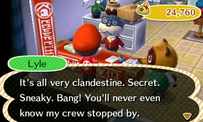 I went to town hall to see if there was anything new going on. My assistant, whom I shall call Debbie, for that is a good name for an assistant, was already in the office. I asked her what the happy-haps around town were. She reminded me that Nooklings Junction had been remodeled and was opening today. She also told me that I should steer clear of the Town Plaza. I asked her why. She hesitated and then told me that the art merchant was back.