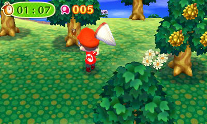 I went straight out to the island and relaxed. I did some fishing and took all the shells, just like last time. After a while I went on a tour. This time it was the bug catching tour. When I arrived, miraculously it was bright outside. This was very weird considering it was night time. I had been tasked with catching a minimum of three bugs to be deemed a winner of any sort. The stopwatch started and I ran around frantically.