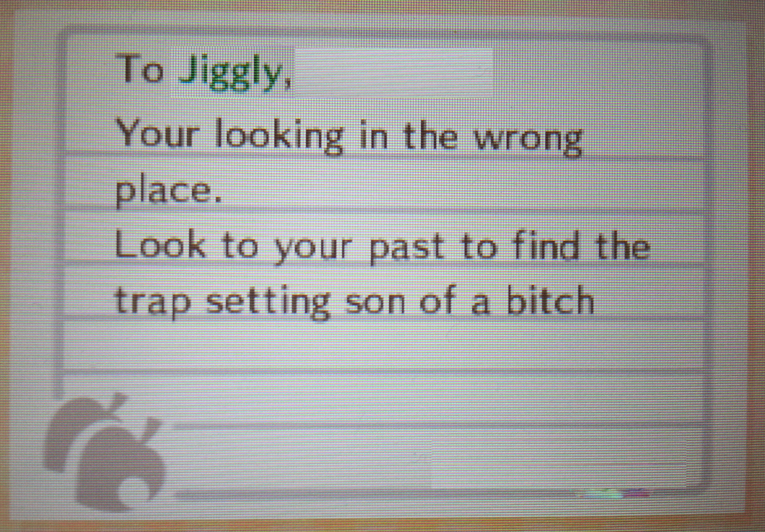 It was a threat. It had to be a message from the trap setting son of a bitch.