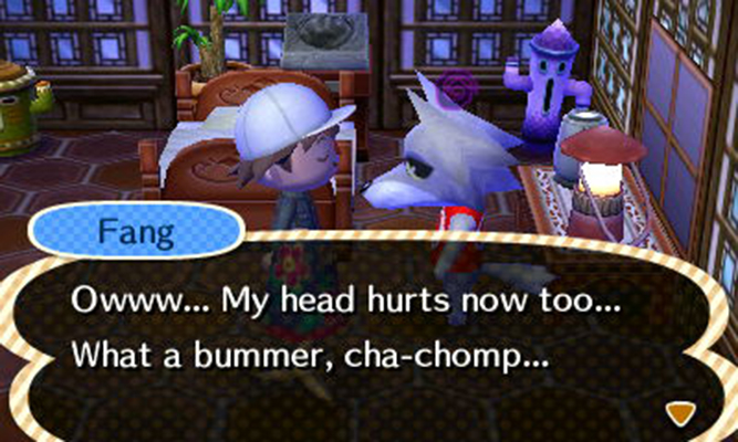 I went to check on Fang to see how he was doing. Hopefully the medication was working. On the stone bridge I bumped into Princess Leia. She saw my shovel and questioned me about it. She said she was looking for the Trap Setting Son of a Bitch. I told her that I use it to dig up fossils and also the buried pit traps to save villagers from falling into them.