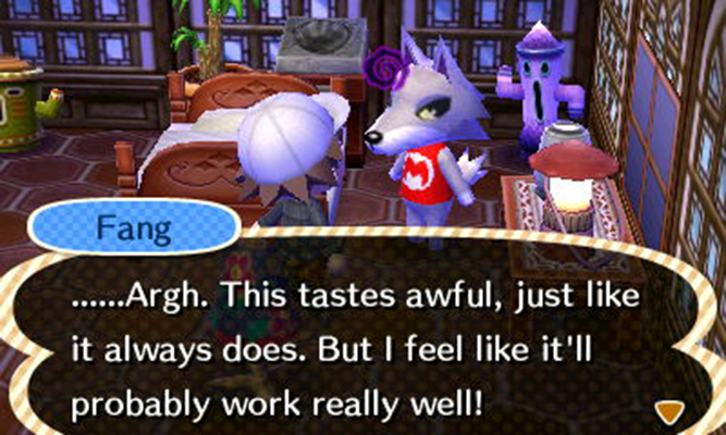 I raced to Super T&T, blasted in through the doors and demanded medication from Timmy, the night shift raccoon. I handed over the four hungie and headed back to give fang the glorious, illness eradicating medicine.